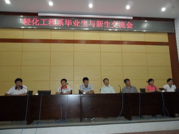 2011年9月3号下午14:30分,在学术报告厅举办了轻化系毕业生与新生交流会,轻化系老师及全体大一新生准时到达会场。