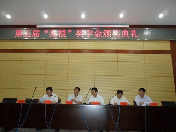2011年9月8号上午10 点整,轻化系第五届“兆根”奖学金颁奖典礼在学术报告厅隆重举行,“兆根”奖学金设立人连兆根先生、学院领导陈小勤书记、徐坤副书记、李为民及陈晓轩副院长、冯健波主任出席此次典礼。