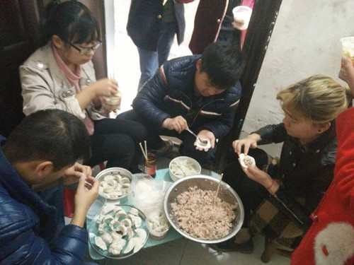 (胡漪讯)2016年3月16日上午10点半,轻化工程学院15生物班的同学们到脑瘫儿童贺健文家中看望贺健文小朋友以及他的家人。他们还带去了包饺子的馅皮和馅料,一起包起了饺子,整个过程其乐融融。15生物班的同学们觉得在帮助别人的同时,自己也能体验到快乐,这就是"雷锋精神"。